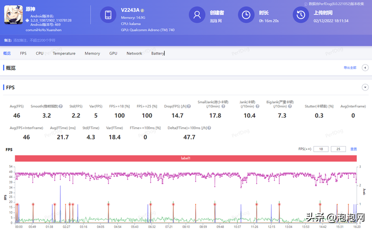 从各项基准测试来看,第二代骁龙8在CPU、GPU、存储支持等各项性能的提升都算是非常可观的,接下来再看看实际游戏的表现。【游戏帧率测试由PerfDog提供技术支持】