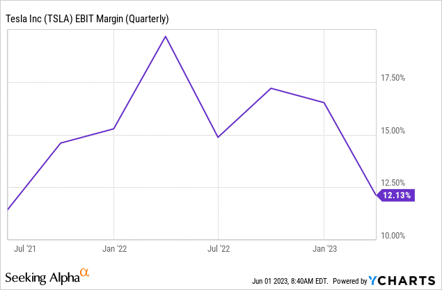 特斯拉利润率正在暴降(数据来源:YCharts)