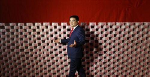 2010年,在某银行的会议厅里,他让人将10万元扎成一捆,并最终砌成了一面“红色”的墙,用来让记者们拍照,据悉,当时,那面墙价值3300万元。