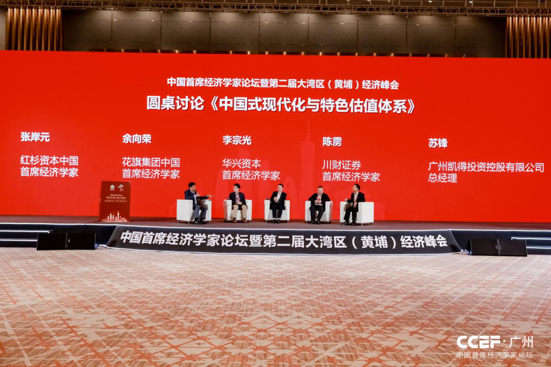 在红衫资本中国首席经济学家张岸元主持下,围绕《中国式现代化与特色估值体系》主题,花旗集团大中华区首席经济学家余向荣、华兴资本首席经济学家李宗光、川财证券首席经济学家陈雳、广州凯得投资控股有限公司总经理苏锋进行了圆桌讨论。至此,为期两天的峰会结束全部议程。