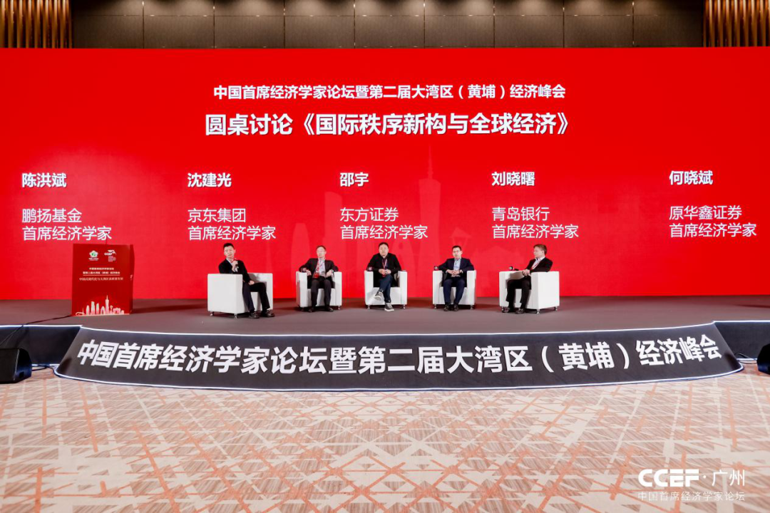 在鹏扬基金首席经济学家陈洪斌主持下,围绕《国际秩序新构与全球经济》圆桌主题,京东集团首席经济学家沈建光、东方证券首席经济学家邵宇、青岛银行首席经济学家刘晓曙、原华鑫证券首席经济学家何晓斌开展了精彩的观点碰撞。