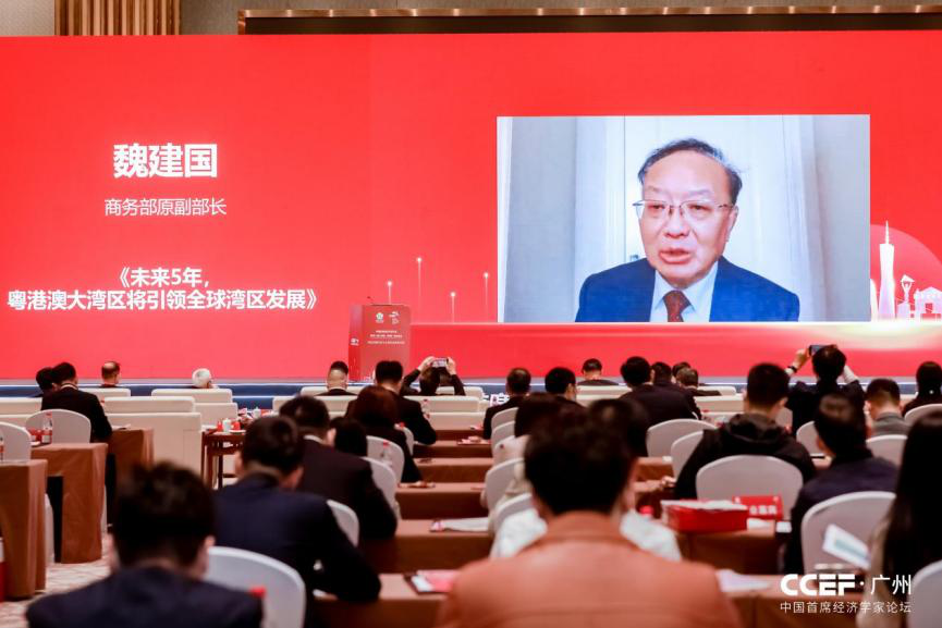 商务部原副部长魏建国通过视频连线做题为《未来5年,粤港澳大湾区将引领全球湾区发展》的主旨演讲,他指出,粵港澳大湾区是全球最年轻的湾区,充满活力和创新,代表未来全球湾区的发展。下一步,粤港澳大湾区要走好三步棋,一是在高水平对外开放中发挥“大码头”作用,二是在高质量发展中突出现代服务业和先进制造业,三是在双循环格局中突出粵港澳大湾区的“一国两制”优势。