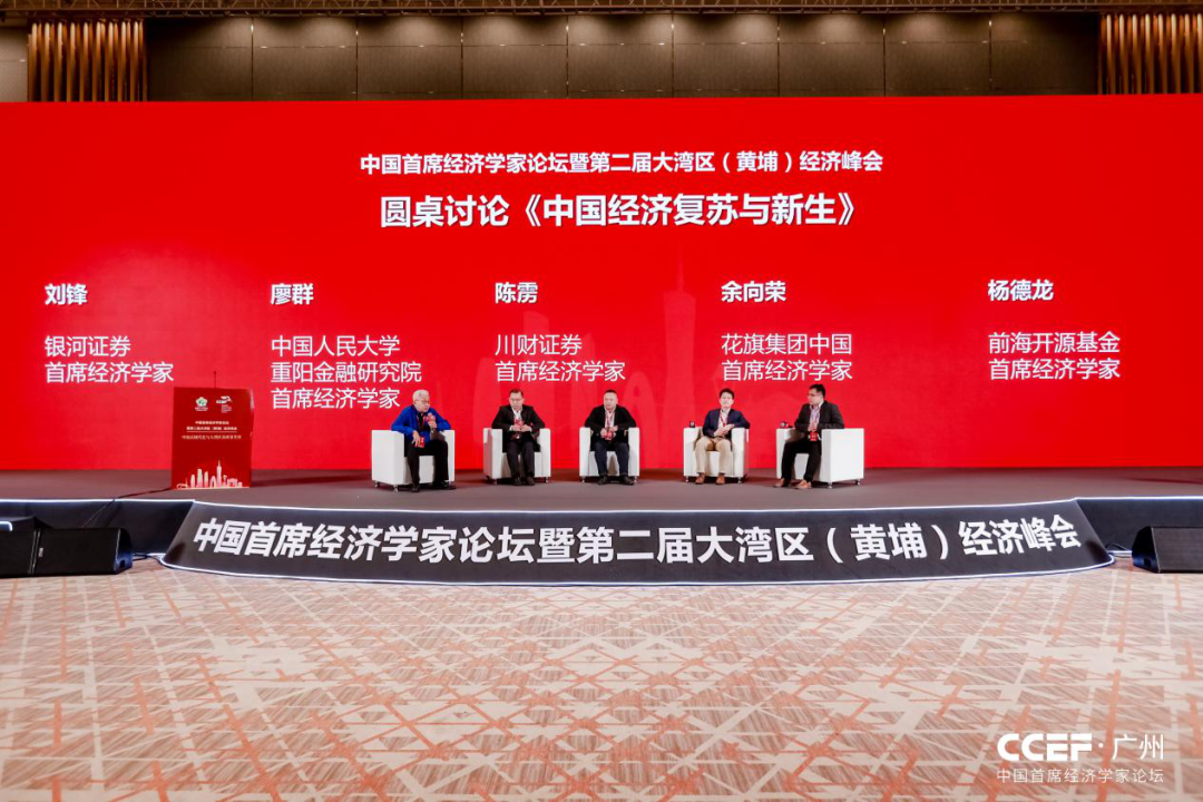 在银河证券首席经济学家刘锋主持下,围绕《中国经济复苏与新生》主题,中国人民大学重阳金融研究院首席经济学家廖群、川财证券首席经济学家陈雳、花旗集团中国首席经济学家余向荣、前海开源基金首席经济学家杨德龙以圆桌对话形式,分享了各自独到观点。