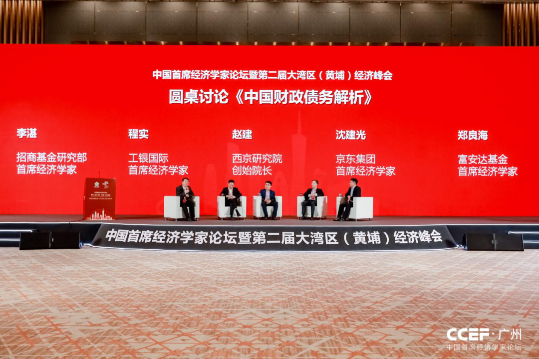 在招商基金研究部首席经济学家李湛主持下,工银国际首席经济学家程实、西京研究院创始院长赵建、京东集团首席经济学家沈建光、富安达基金首席经济学家郑良海围绕《中国财政债务解析》主题,展开了圆桌讨论。
