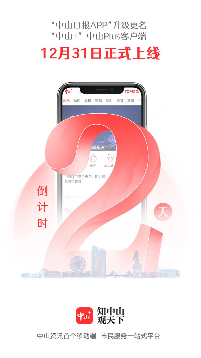 记者获悉,中山日报报业集团自主研发的“中山日报APP”经过全面改版升级,成功蝶变为“中山+”,12月31日即将正式上线运营。“中山+”中山Plus客户端作为中山资讯首个移动端及市民服务一站式平台,承担起信息发布主平台功能。知中山,观天下,“中山+”充分发挥自主可控优势,在权威准确前提下,抢抓时效,以快制胜,争取重大突发新闻的全网首发,为500多万新老中山人提供更实用、更便捷、更多元的资讯信息服务。