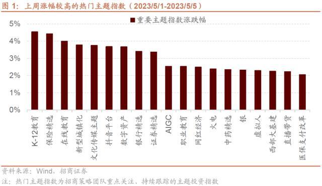 上周,A股涨幅靠前的热门主题指数为:K-12教育、保险精选、在线教育。