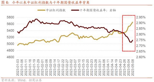 今年以来,高股息资产股息率不断抬升,并与十年期国债利率走势形成明显背离。截止2023年5月5日,中证红利指数今年涨幅为12.43%,股息率达5.84%。5月以来,渤海银行、浙商银行、恒丰银行、隰县新田村镇银行、应城融兴村镇银行等银行纷纷下调存款利率。目前,高收益率资产相对缺失,后续随着银行利率降低,高股息或低估值资产关注度有望提升。高股息资产中,优质国企不在少数,后续有望率先修复。
