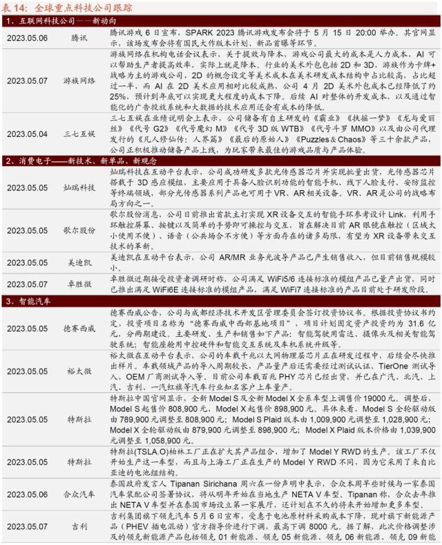 3、全球重点公司跟踪
