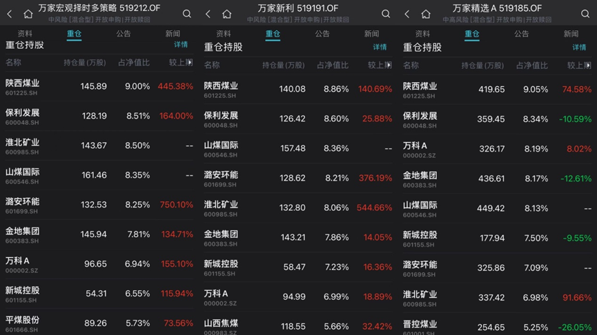 值得一提的是,混合型基金收益排名的前三甲均被基金经理黄海包揽。这三只基金的持仓策略非常相近,重仓在煤炭股和房地产股,其中前两大持仓股均为陕西煤业和保利发展。