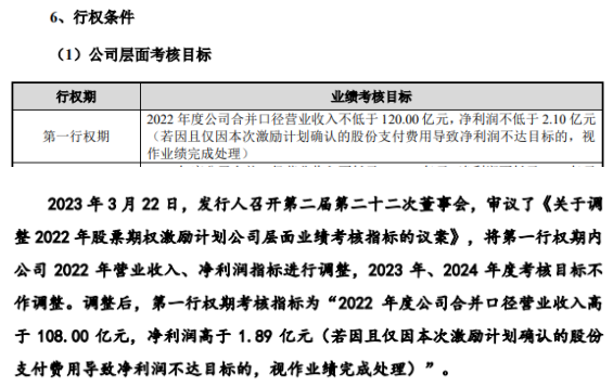 不过,建发致新在2023年3月22日,将指标进行修改,即2022年营业收入高于108亿元,净利润高于1.89亿元,使得计划没有在第一期便“折戟”。
