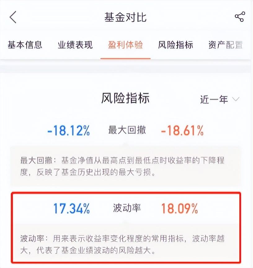 现在很多软件都有基金PK的功能,可以参考波动率选择更适合自己的基金: