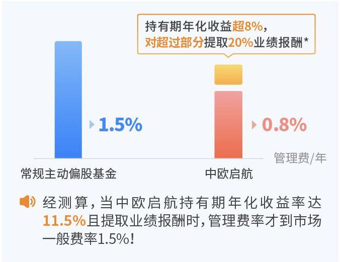 跟偏股基金一般水平一样,中欧匠心的管理费是1.5%/年;新基金中欧启航采用的是“低基础管理费+业绩提成”的浮动费率收费模式,基础管理费为0.8%,当持有人赎回或转出时,持有期年化超过8%时,对超过部分提取20%业绩报酬,与投资人的每一笔投资利益捆绑!