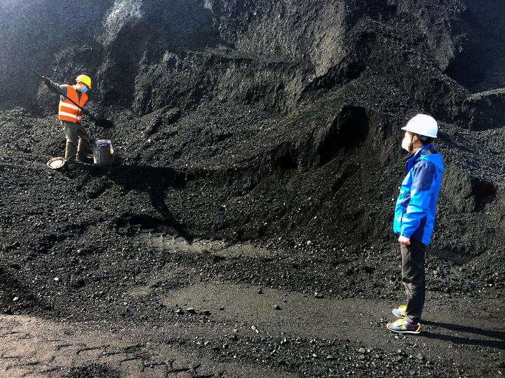 浙能富兴燃料公司镇海港区值班人员正在煤场取样作业 刘洋 摄