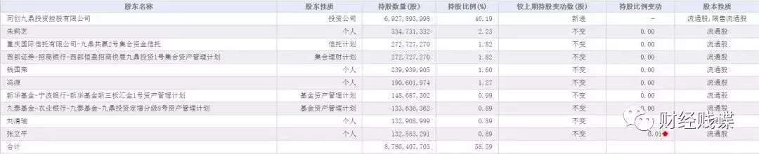 截至复牌前,九鼎集团的股东户数为3206户,前十大股东持股占比达到58.59%,其中包括两个基金资管计划--新华基金新三板汇金1号资产管理计划持有1.487亿股、九泰基金-九鼎投资定增分级8号资产管理计划持有1.34亿股。