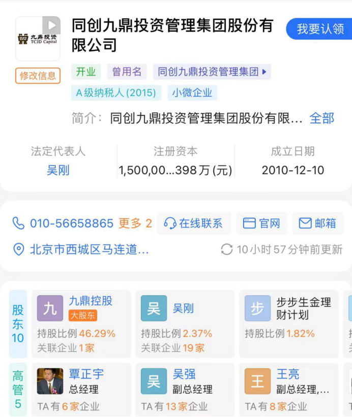 九鼎集团曾在2015年时风光无限。彼时,吴刚凭借之前的投行与在证监会锻炼的敏锐经验在2007年与友人黄晓捷一起下海创业。