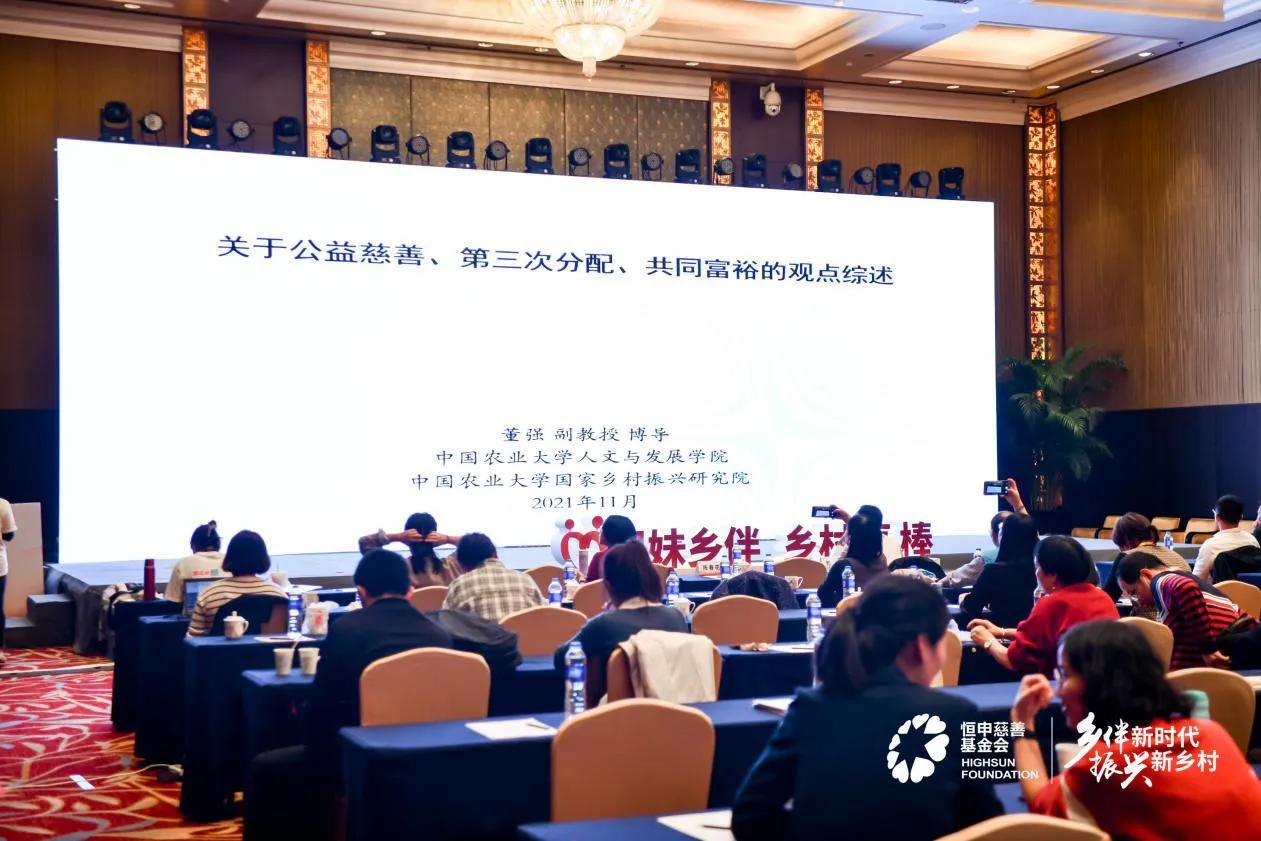 11月19日,由福建省恒申慈善基金会举办的“乡伴新时代 振兴新乡村”2021多元力量参与乡村振兴思享会暨“姐妹乡伴—乡村妇女自组织支持计划”项目三周年总结会在香格里拉福州厅顺利举行。福建省民政厅儿童福利处处长廖振华;福建省工商联经济联络部二级调研员、福建省光彩事业促进会秘书长林玉宏;福州市妇联党组成员、四级调研员朱余泉;中国农业大学人文和发展学院副教授、博士生导师,国际发展与全球农业学院公益组织国际化研究中心主任董强;福建省妇女儿童发展基金会春蕾项目办公室主任王坤;福建省恒申慈善基金会副理事长叶周玲;福建省林文镜慈善基金会秘书长刘洲鸿;福建省海西青年创业基金会常务副理事长黄绍庆;招商局慈善基金会项目官员冯飞丽及省内外多家关注乡村振兴的近80名社会组织代表参加此次会议。