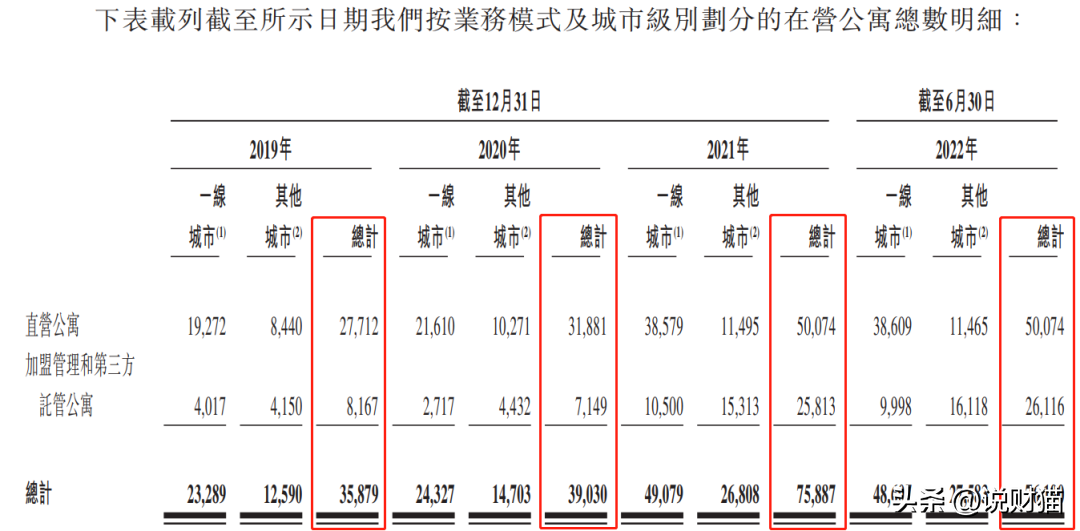 可以看得出来,都是轻资产模式,即不拥有房子。