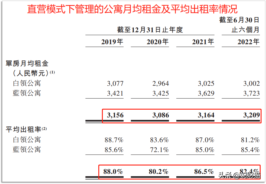 魔方公寓招股书显示,直营公寓的单房月均租金稳定在3000元以上,并且出租率在80%以上。