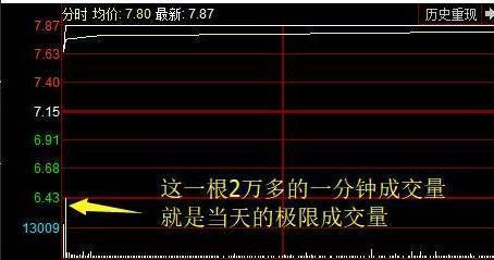 所谓极限成交量,就是昨天它涨停的时候,一分钟最大成交量(通常是打板瞬间。)