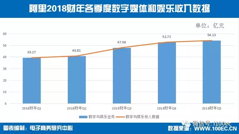 阿里在2018年对技术、人才和娱乐内容的投入为其数字化发展打下了坚实的基础,甚至来说娱乐消费已经超越了其核心商业业务。阿里利用5.52亿客户基础,对年度活跃的消费者进行大数据分析,了解他们的兴趣和偏好,从而对娱乐化消费产生良好的定位来执行战略,发展数字媒体和娱乐业务。