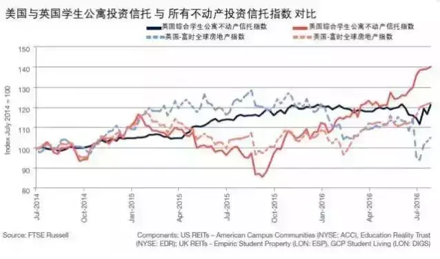 在各类地产投资中,学生公寓的租金增长和出租率数据表现更优,美国学生公寓地产信托基金在过去两年内表现优于全种类房地产投资信托基金19个百分点。