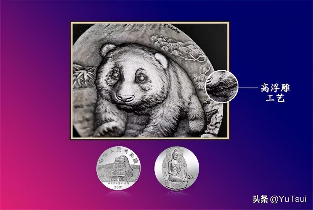 这是相对于传统浅浮雕而言,采用更高的浮雕来表现纪念币图案的层次感。国内常用于纪念章,石窟及遗产系列纪念币也有尝试,且2001年敦煌2盎司高浮雕银币获“世界最佳银币”奖(此币正是帕劳熊猫币雕刻师宋飞的作品)。