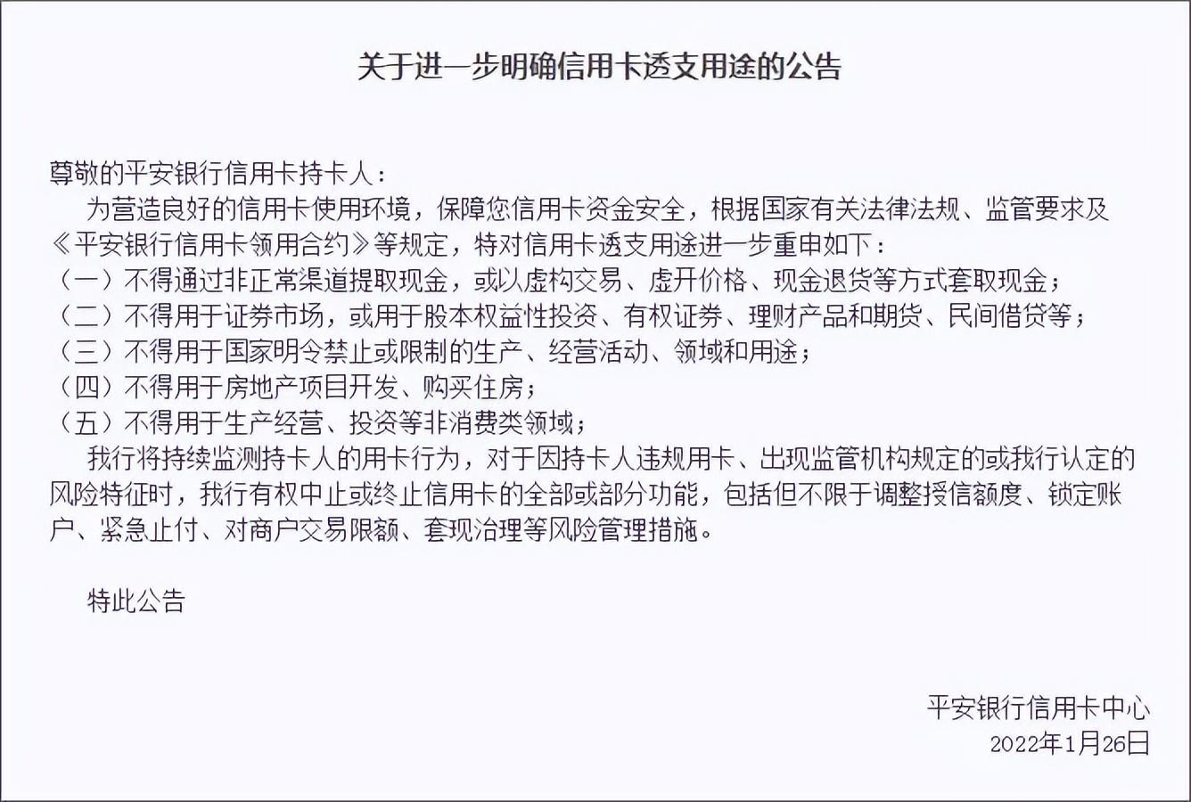 平安银行也多次发布严禁套现的公告,加强信用卡规范使用