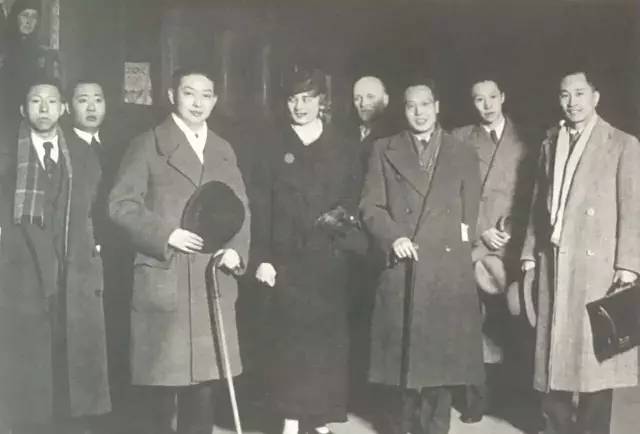 1935年,梅兰芳在欧洲与吴邦本等合影