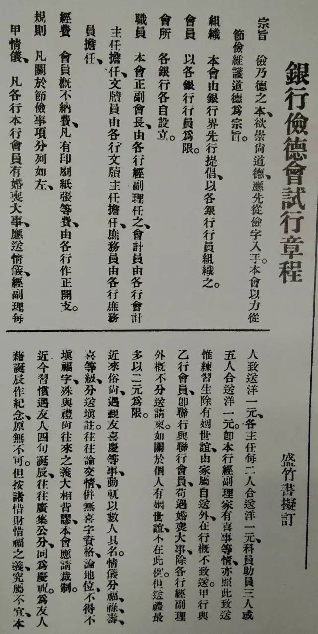 盛竹书拟订的《银行俭德会试行章程》