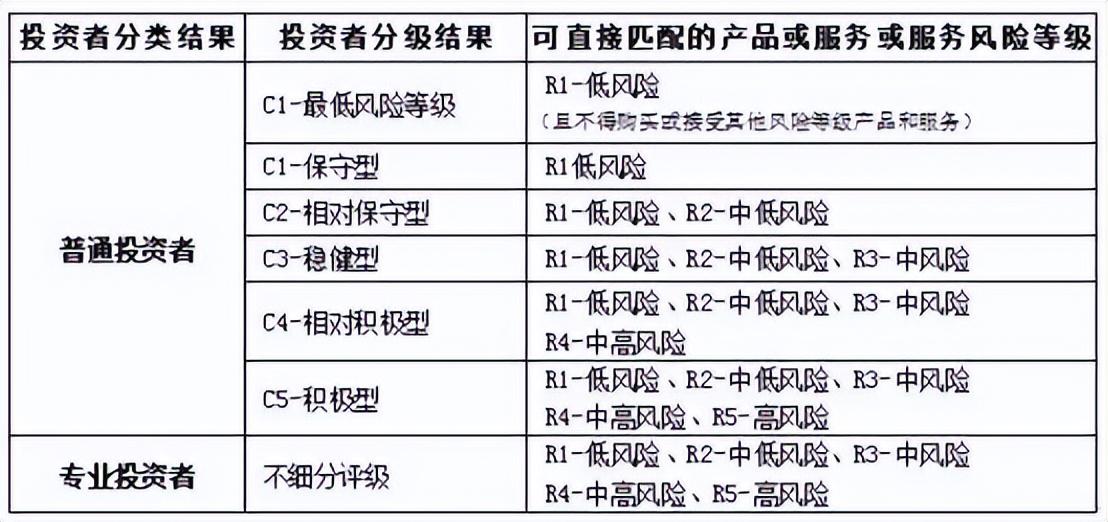 个人投资者通过银行、网站或者APP 购买基金前,都会被要求进行风险承受能力测评。普通投资者填写风险测评问卷,问卷内容涉及财务状况、投资经验、投资知识、投资者目标、风险偏好和其他信息等内容。根据普通投资者测评得分,将普通投资者划分为不同的风险等级:C1- 最低风险等级、C1- 保守型、C2- 相对保守型、C3- 稳健型、C4- 相对积极型和C5-积极型。