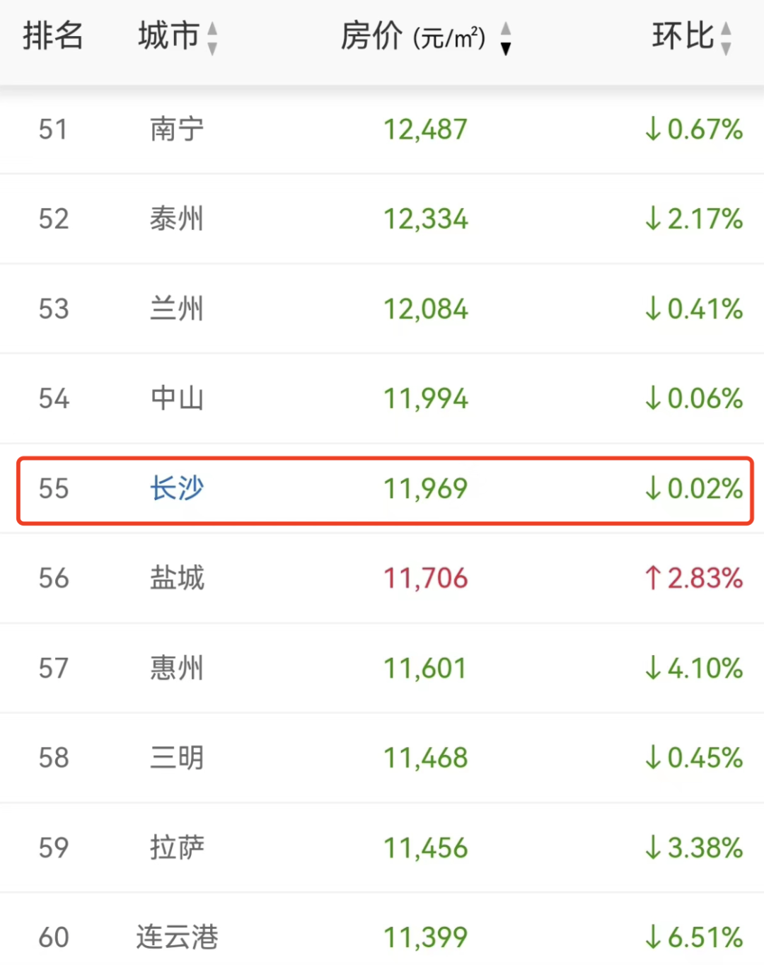 到2023年4月,长沙房价的均价为1.2万元/平米,每平米涨了1000块,全国排名也上升到第55位,