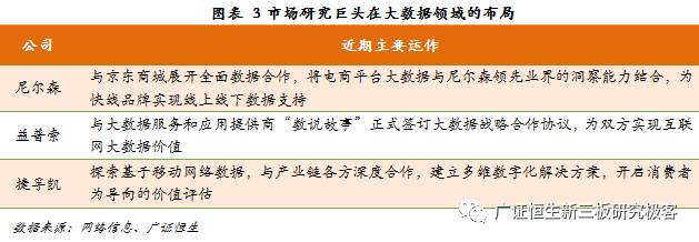 随着大数据技术发展,行业内的巨头企业尼尔森、益普索等已经在大数据领域积极布局,构建数据中心,获取大数据资源和提高数据分析能力。