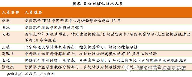 其中核心团队平均拥有15 年以上的行业从业经验,并且拥有一定的研究或技术特长,是公司研究与项目管理的业务带头人。大数据技术团队以清华、北邮计算机博士领衔,以IBM、微软的企业级资深技术人员为核心,公司采用培养自有人才,同时引进跨国公司人才的方式,持续扩充人才队伍。通过培养与引进并举的方式,公司目前已同时拥有大数据处理、掌握大数据算法和行业洞察的专业人才。