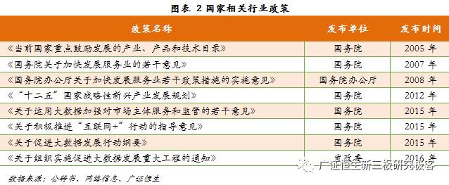 国家相关行业政策密集出台,提供了良好的政策环境。决策层支持推动公众数据数据开放利用,数据中心等基础设施规划建设,促进大数据产业链发展。