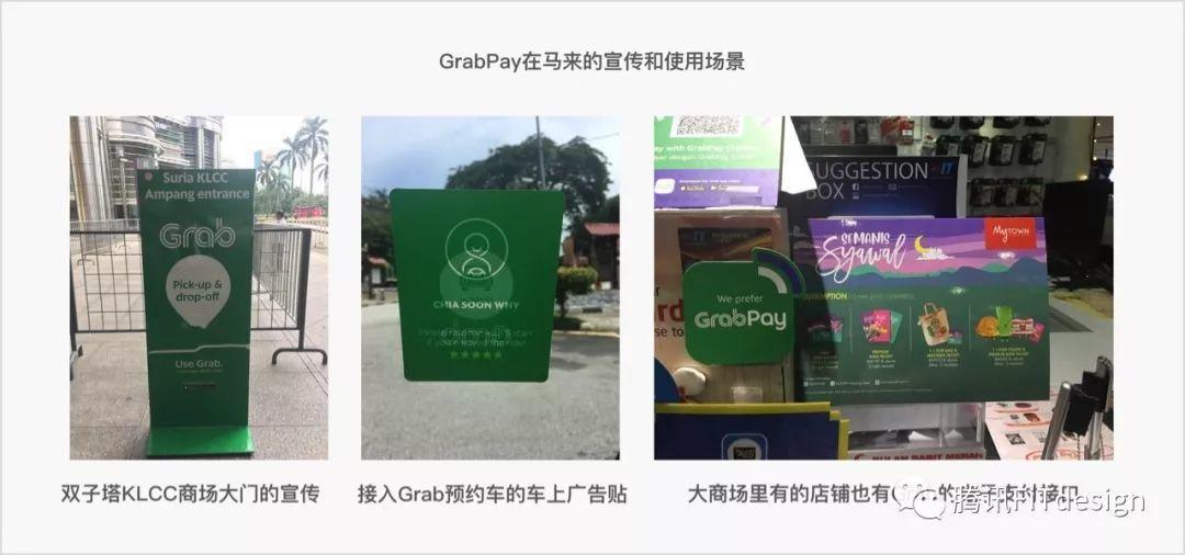 GrabPay的线下推广主要分为两大类:一类是人流多的商场(如:KLCC)、车站等设立广告牌,二类是有合作的出租车、私家车进行车内宣传,贴广告牌、跟客人介绍打车软件。在链锁店便利店、商场里的店铺设有grabpay钱包支付,此外,还有与交通出行相关的电子优惠券供使用。