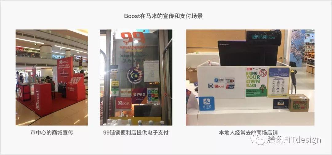 Boost的线下宣传场所与它的定位是相互匹配的,场所设立在商场购物区里,这种品牌印象是让用户在购物是联想到boost,而boost是线下购物的沿伸,当用户离开商场后,他仍然可以使用boost继续购物,其宣传特点是场景代入感比较强。