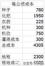 ;农场种植成本方面每公顷地租价格没变,5400元,化肥1800,种子1000,往年种子2300左右,机种400元,机收1000元,农药150,产量9-10吨,卖4毛,不够本,