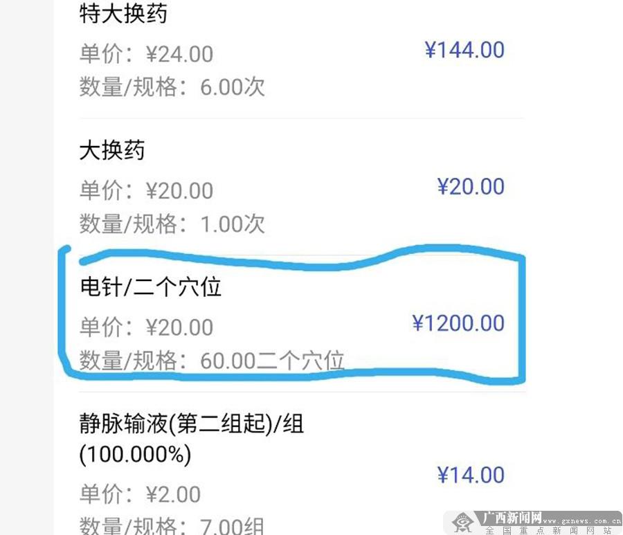 7月6日,钦州网友反映:自己患皮肤病在灵山人民医院就诊期间,每天都有一张费用单却无详细清单,而医院推出的绑定住院号却说可以查询费用清单,但始终都无法绑定成功。最后直到出院前一天才看到清单,总费用3500多元,其中一项针灸占费用的4成,一天200元,6天花费1200元,一个辅助的医疗项目竟然比真正看病用药的费用还要多,收费如此昂贵,有关部门该管管了。