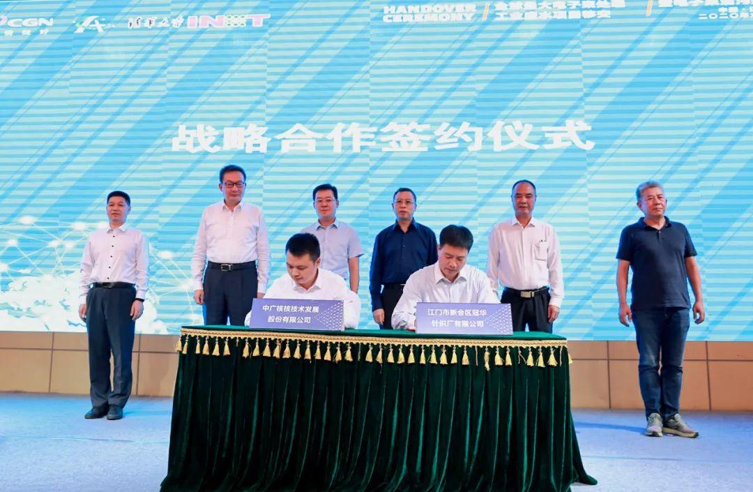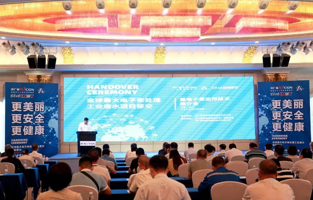 当天,中广核技在江门新会举办“全球最大电子束处理工业废水项目”移交暨电子束治污技术推介会。会上,中广核技与冠华针织厂进行了项目移交,并签署战略合作框架协议,双方约定将在未来的污水处理系统建设、改造和运营环节,继续开展深入合作。同时,中广核技全资子公司中广核达胜加速器技术有限公司(简称“中广核达胜”)与鄄城丰青元环保有限公司签署合作协议,双方将围绕电子束技术处理制药废水展开研究与合作。
