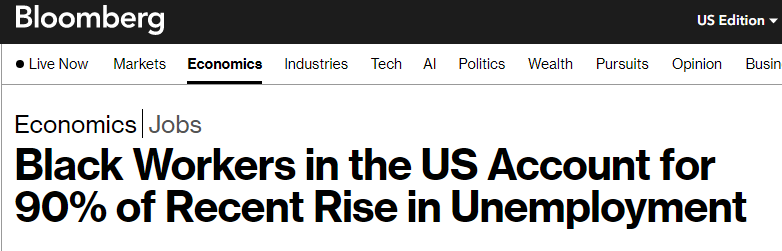 研究显示,当美国的经济形势开始走低时,非裔劳动者往往是最先遭到解雇的群体之一,近期就业人数的下降可能是整个美国劳动力市场的一个预警。