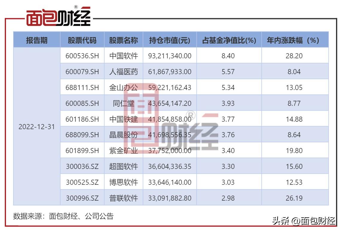 该基金四季度末重仓股包括中国软件、人福医药、金山办公、同仁堂、中国铁建等企业。
