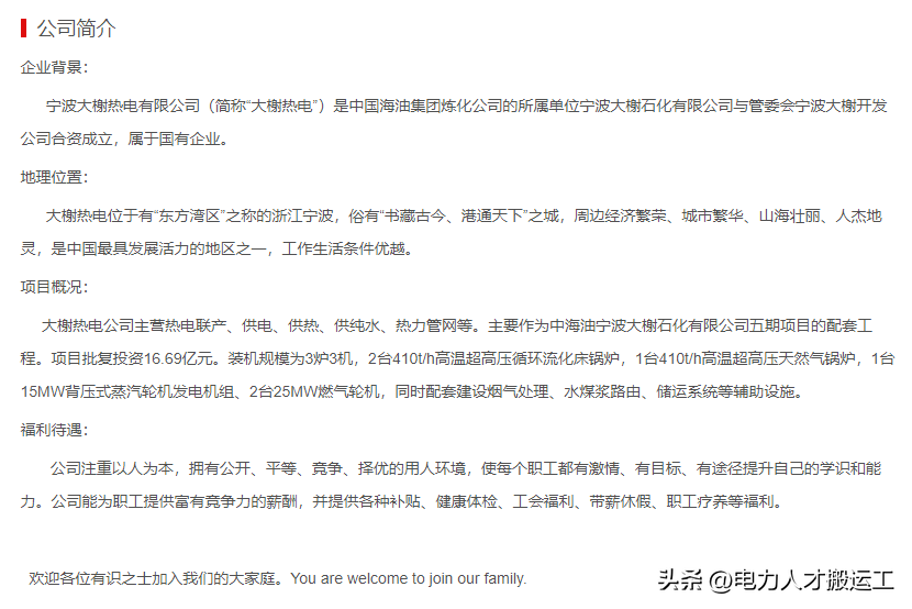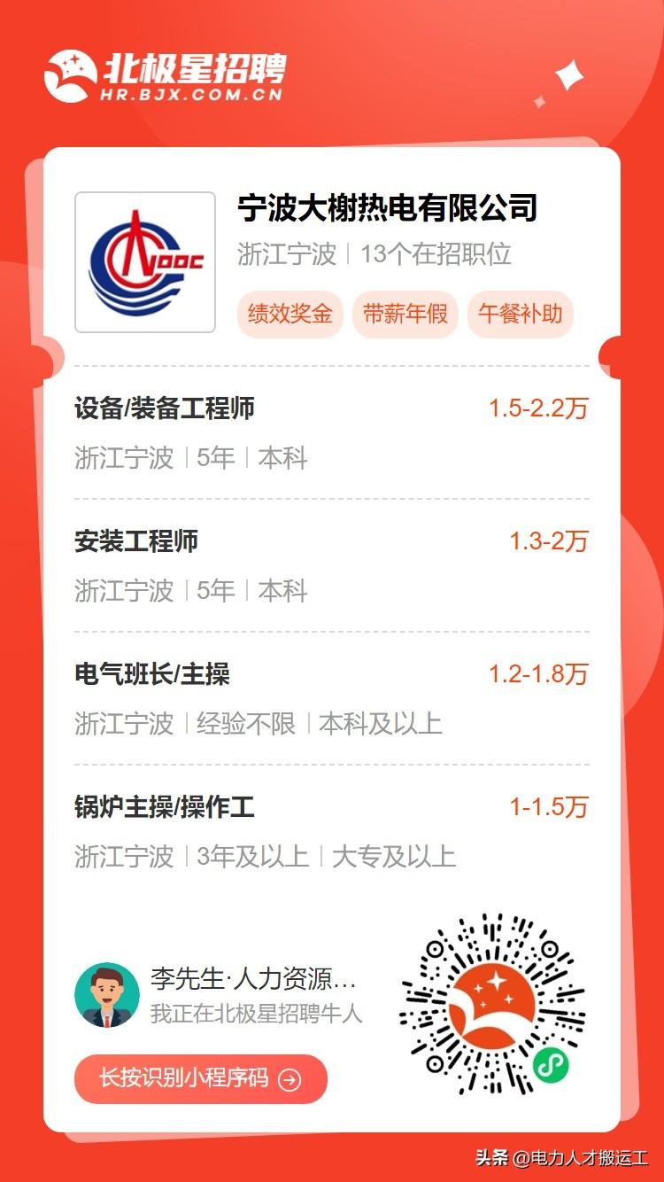 【中海油】宁波大榭热电有限公司公开招聘13个岗位!-宁波热电股份有限公司