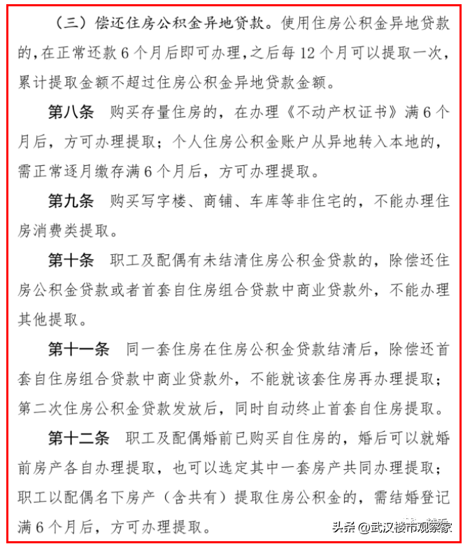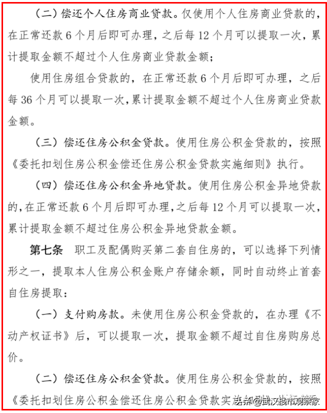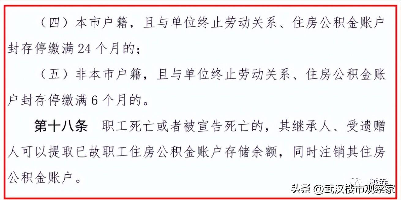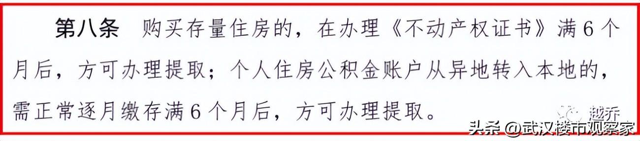 (增加内容:个人住房公积金账户从异地转入武汉的,需正常逐月缴存满6个月后,方可办理提取。)