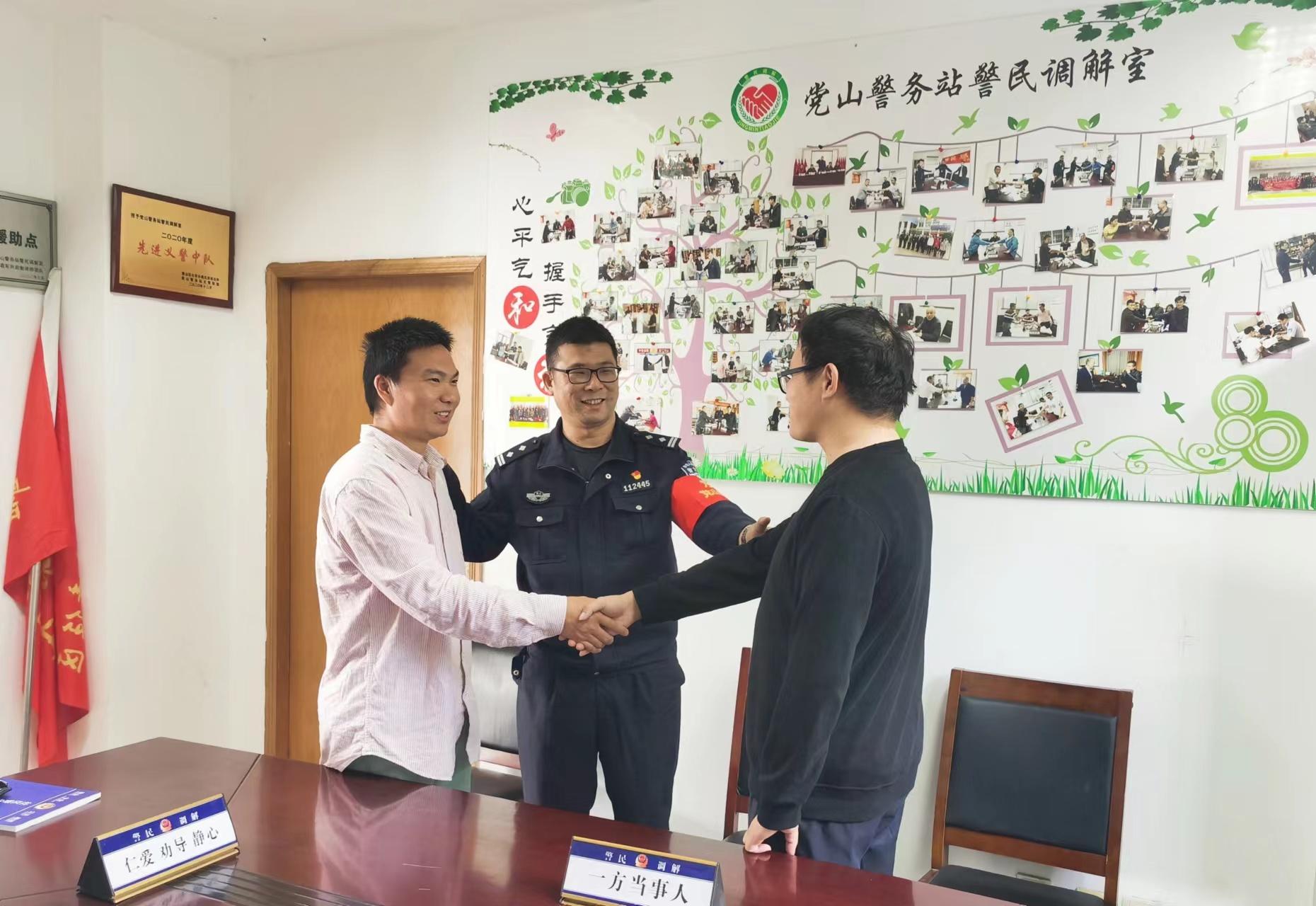 在党山警务站的警民调解室,承载了无数家长里短,浓缩了警民之间的满满情谊。在3年多的时间里,警民调解室已化解各类纠纷500余起,调解成功率达100%。